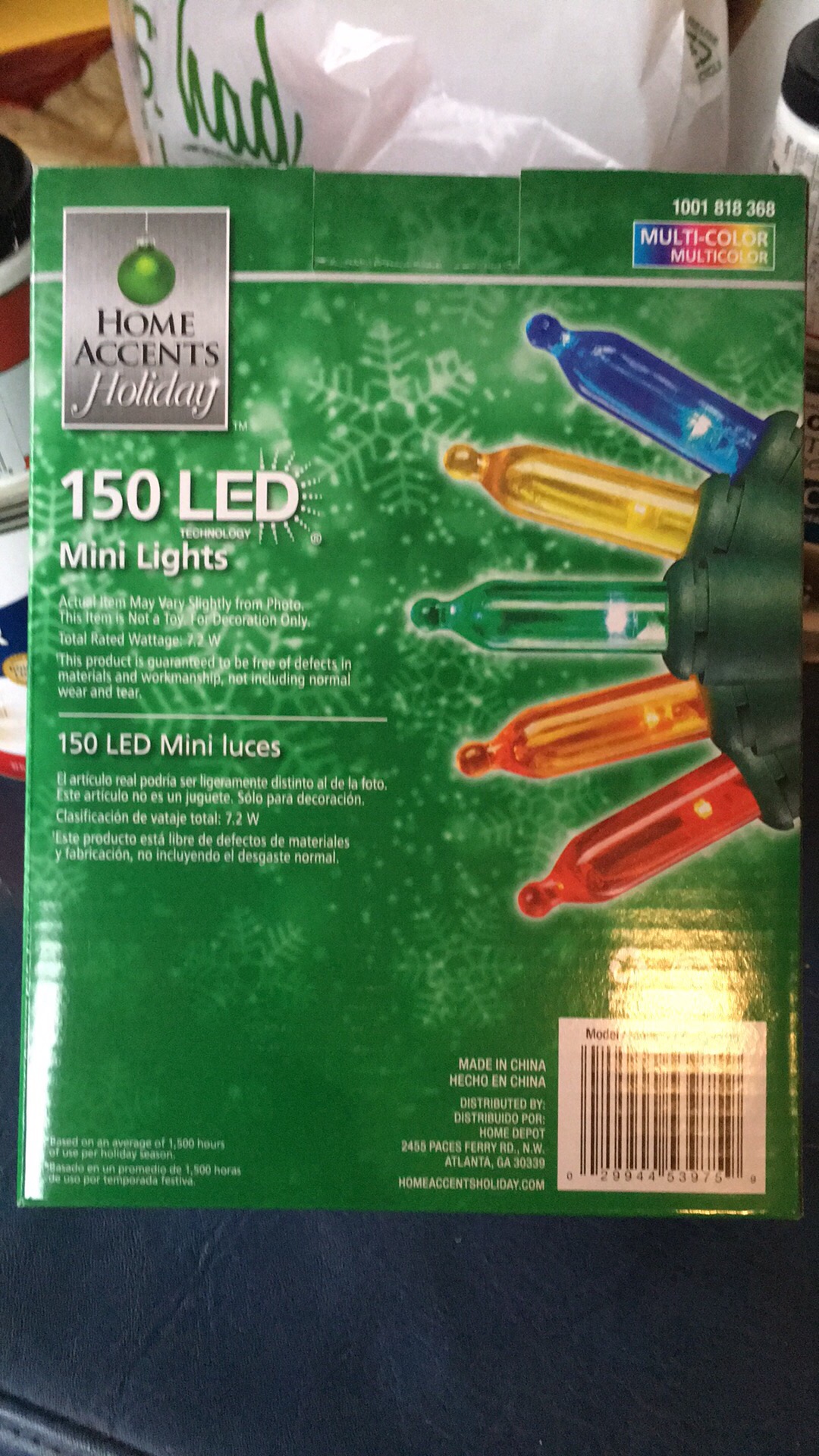 Made for Home Depot in China.  Home Depot might want to consider spending a bit more on having their branded lights manufactured to safer standards.  Perhaps it would be wise to sell lights that don’t endanger people by burning up in 15 hours instead of lasting the “15 holiday seasons” advertised on the box. HMMM!
